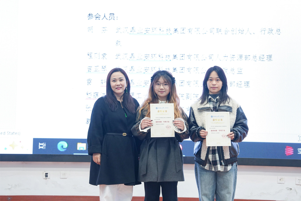 會上,程則袁經理代表鼎業(yè)安環(huán)集團向獲獎同學表示熱烈祝賀,并對學院在人力資源管理領域取得的卓越成就表示贊賞。他提到:“武漢理工大學管理學院在學科建設與人才培養(yǎng)方面成果豐碩,為社會輸送了大量高素質管理人才,這與鼎業(yè)安環(huán)對人才的重視與需求高度契合。”