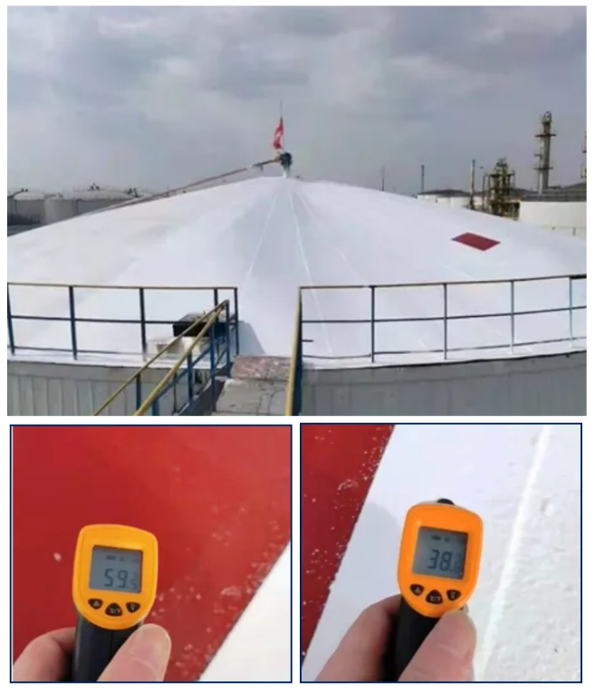 再生循環(huán)保溫材料在儲罐浮頂?shù)慕^熱降溫效果:從59℃下降到38℃